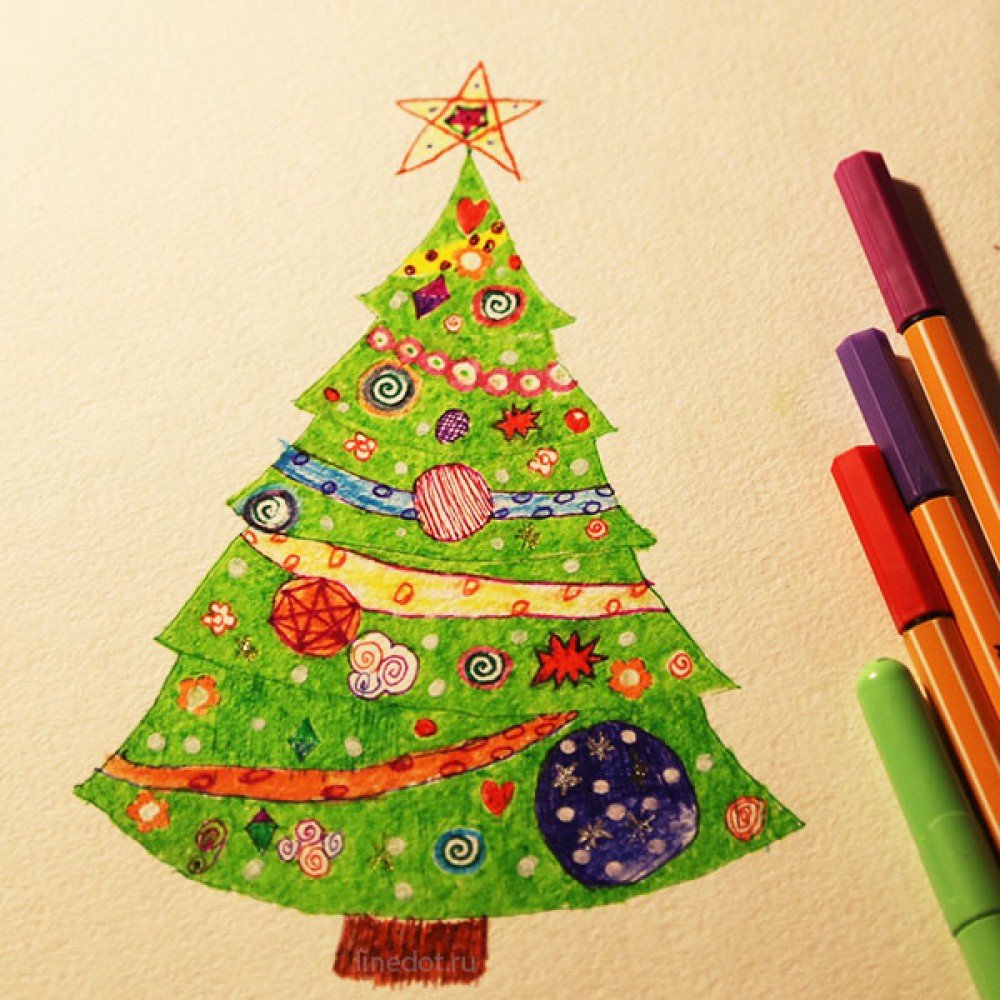Рисунок елки фломастерами