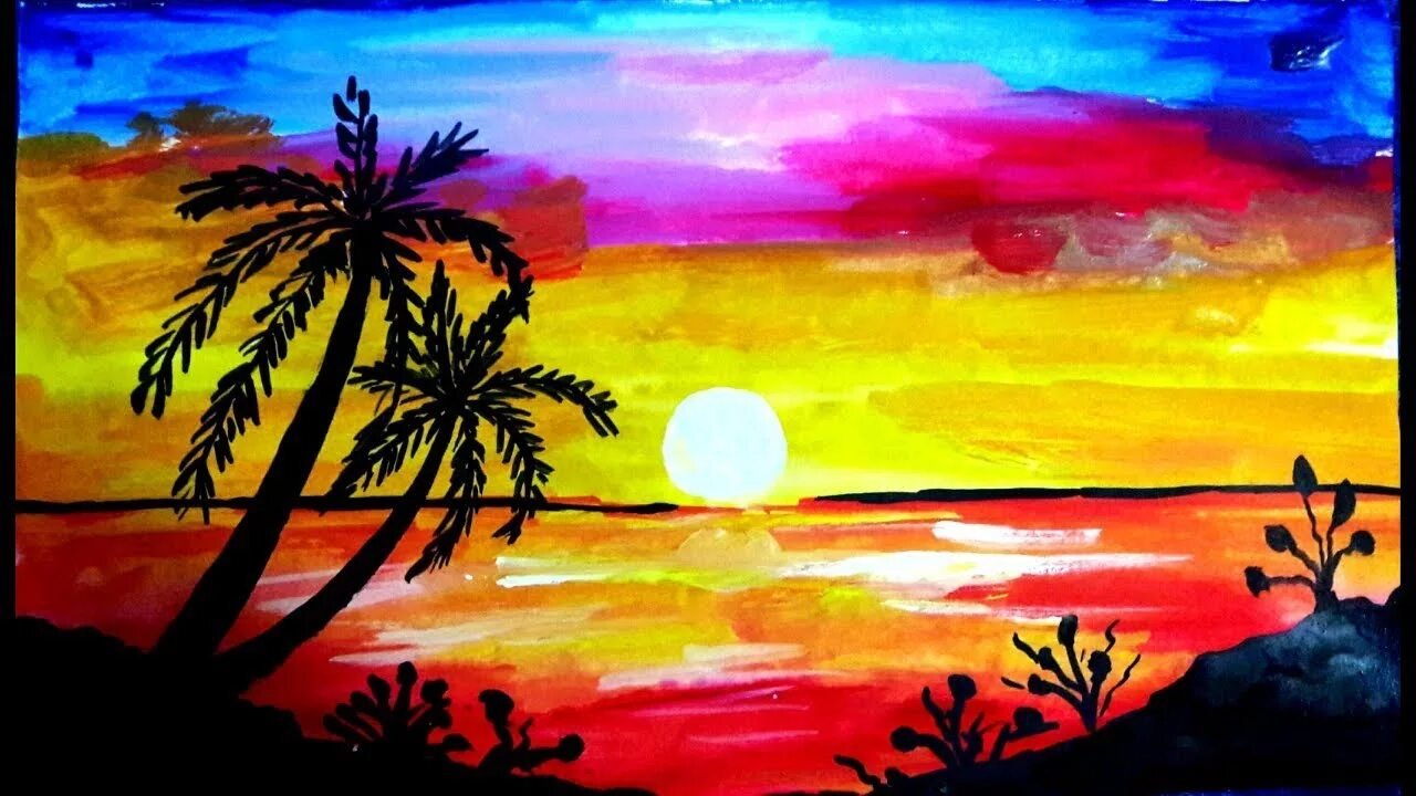![Закат красками для детей]()