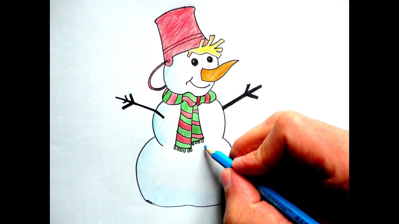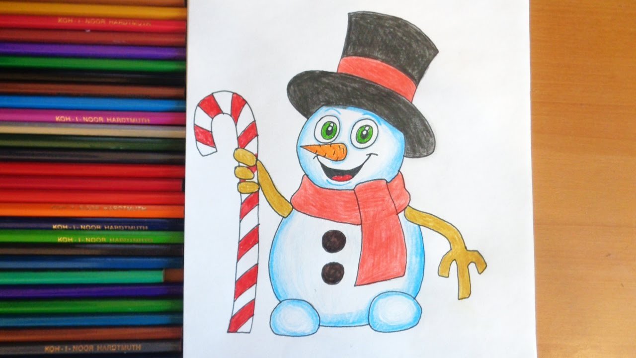 ![Снеговик цветными карандашами]()