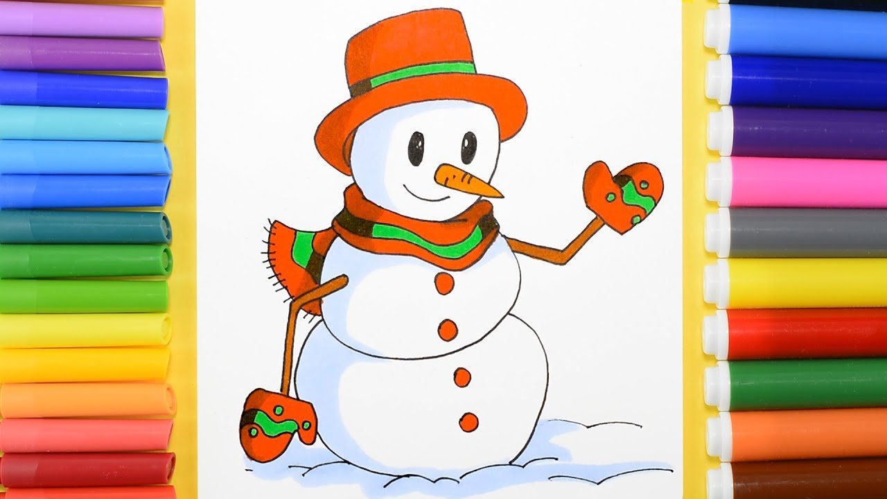 Снеговик рисунок для детей фломастерами