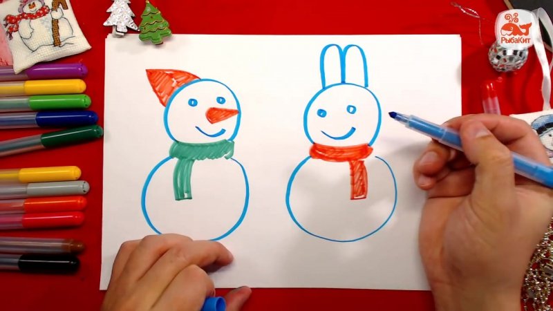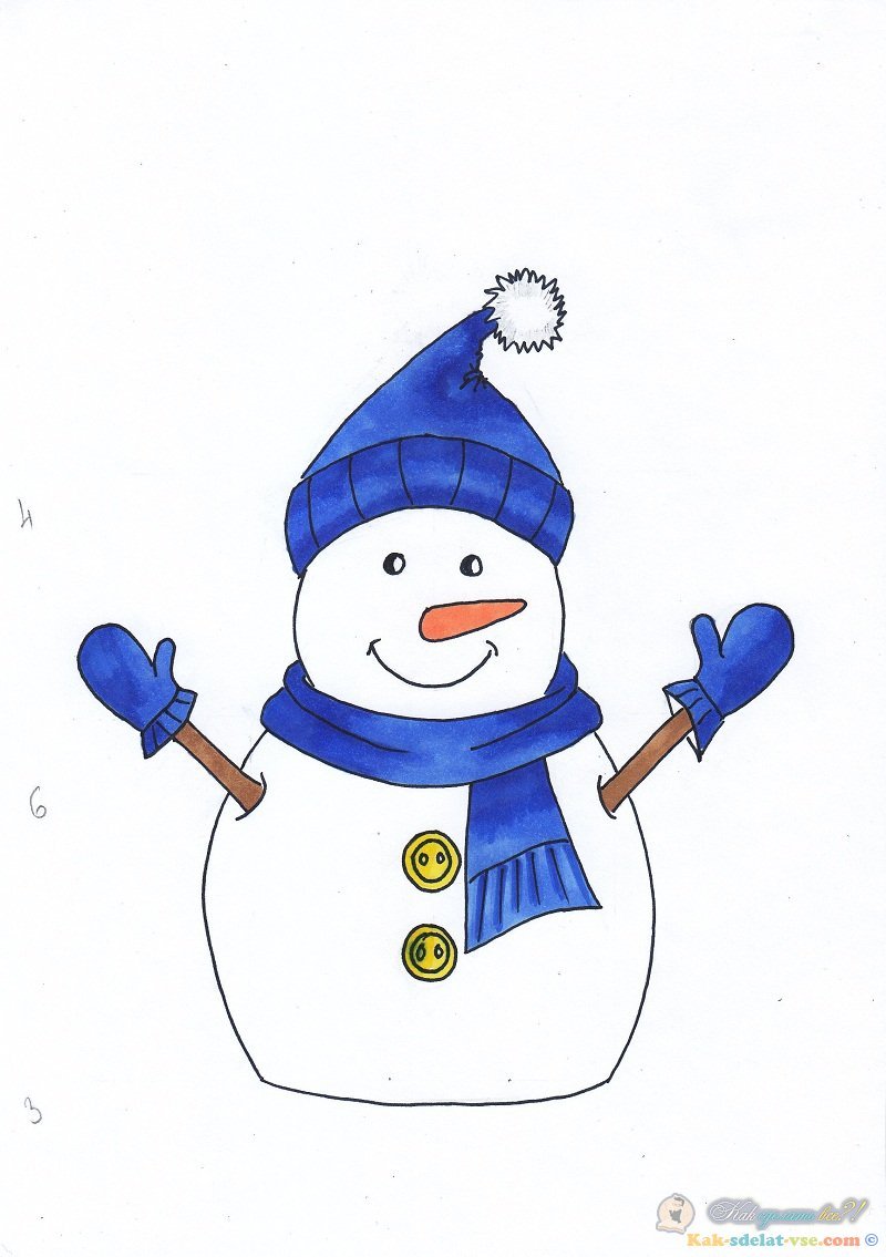![Снеговик рисунок маркерами]()