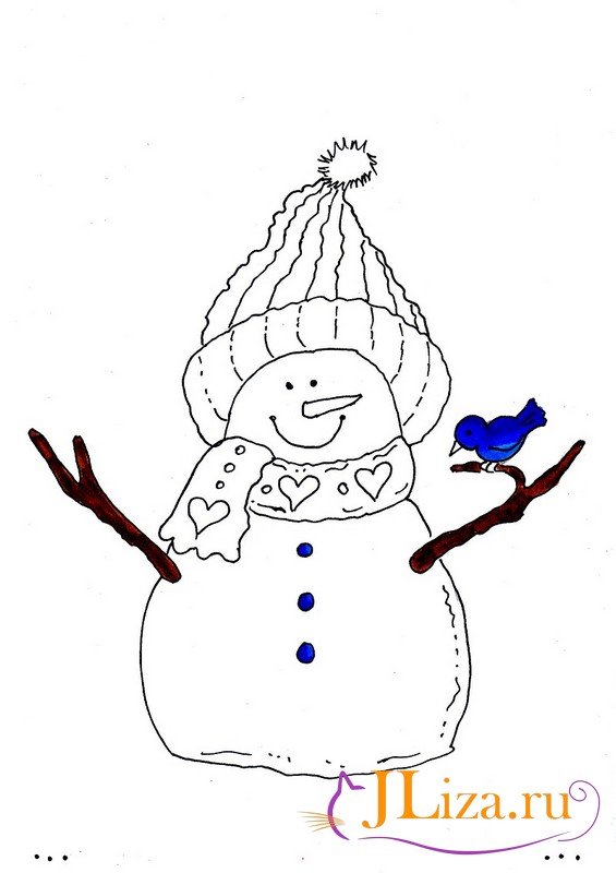 Разукрасить снеговика фломастерами