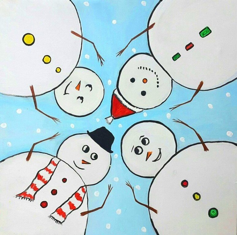 Рисование снеговика красками
