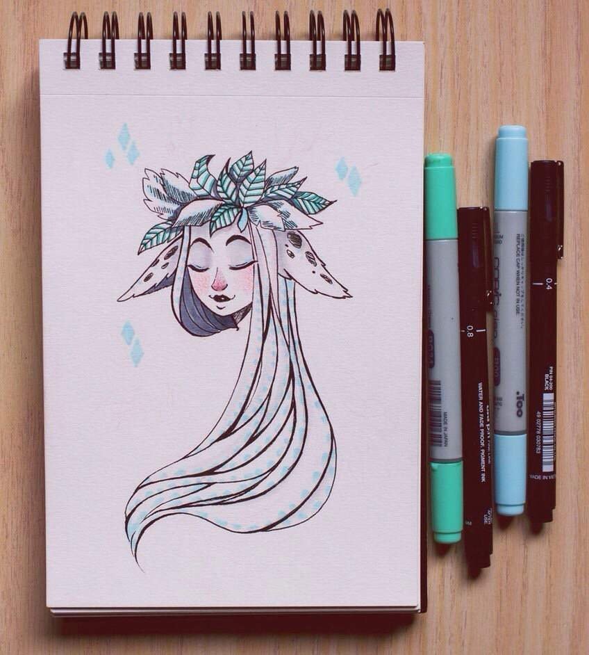 ![Рисунки для скетчбука маркерами девушки легкие]()