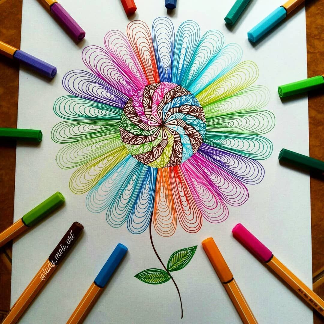 ![Рисунки разноцветными ручками легкие]()