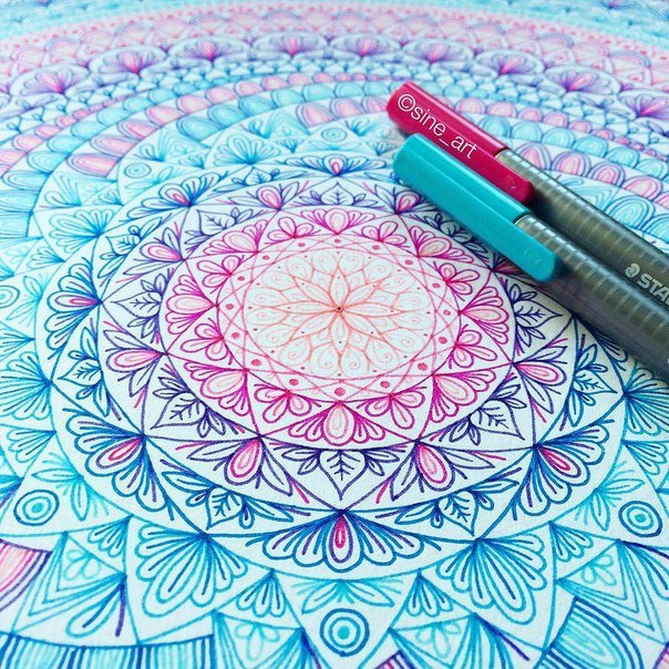 ![Узоры цветными гелевыми ручками]()