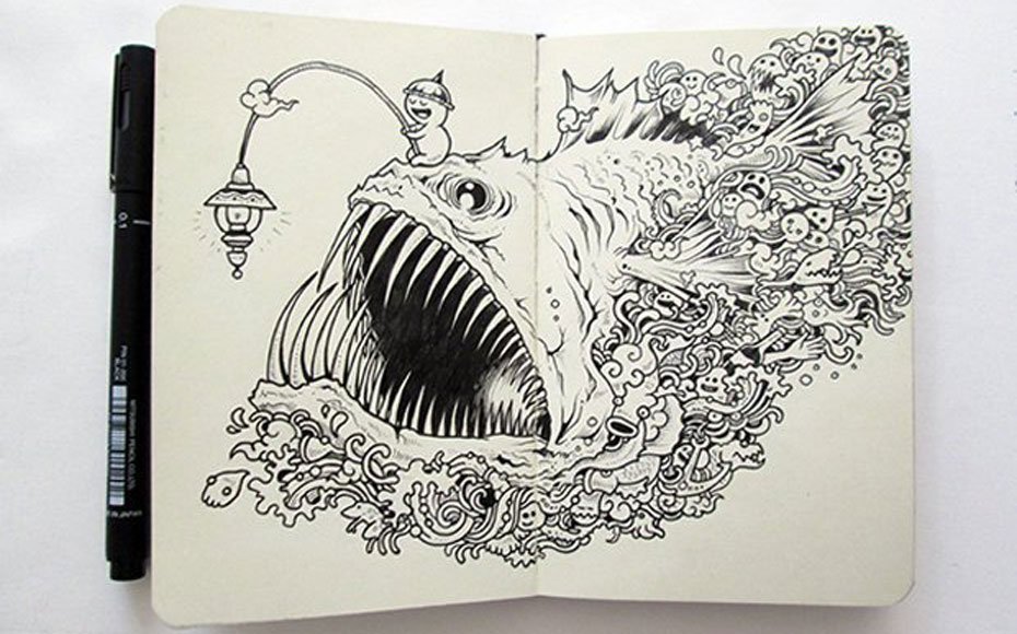 ![Рисунки в скетчбуке черной ручкой легкие]()