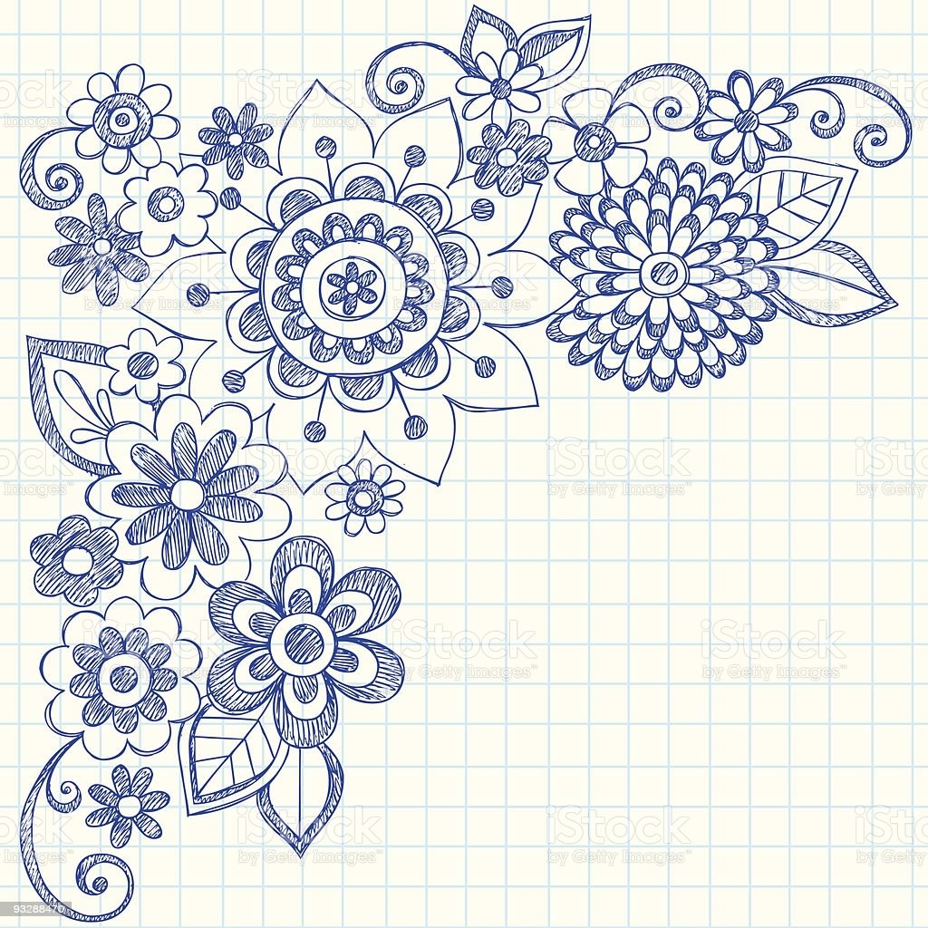 ![Цветочки в тетради ручкой]()