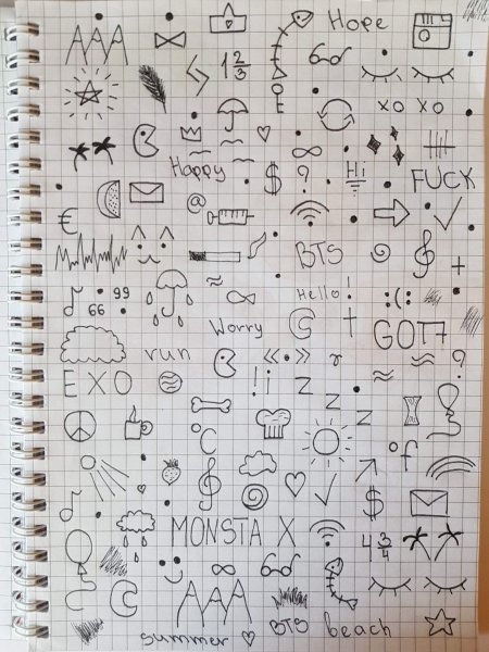 ![Маленькие рисунки ручкой в тетради]()