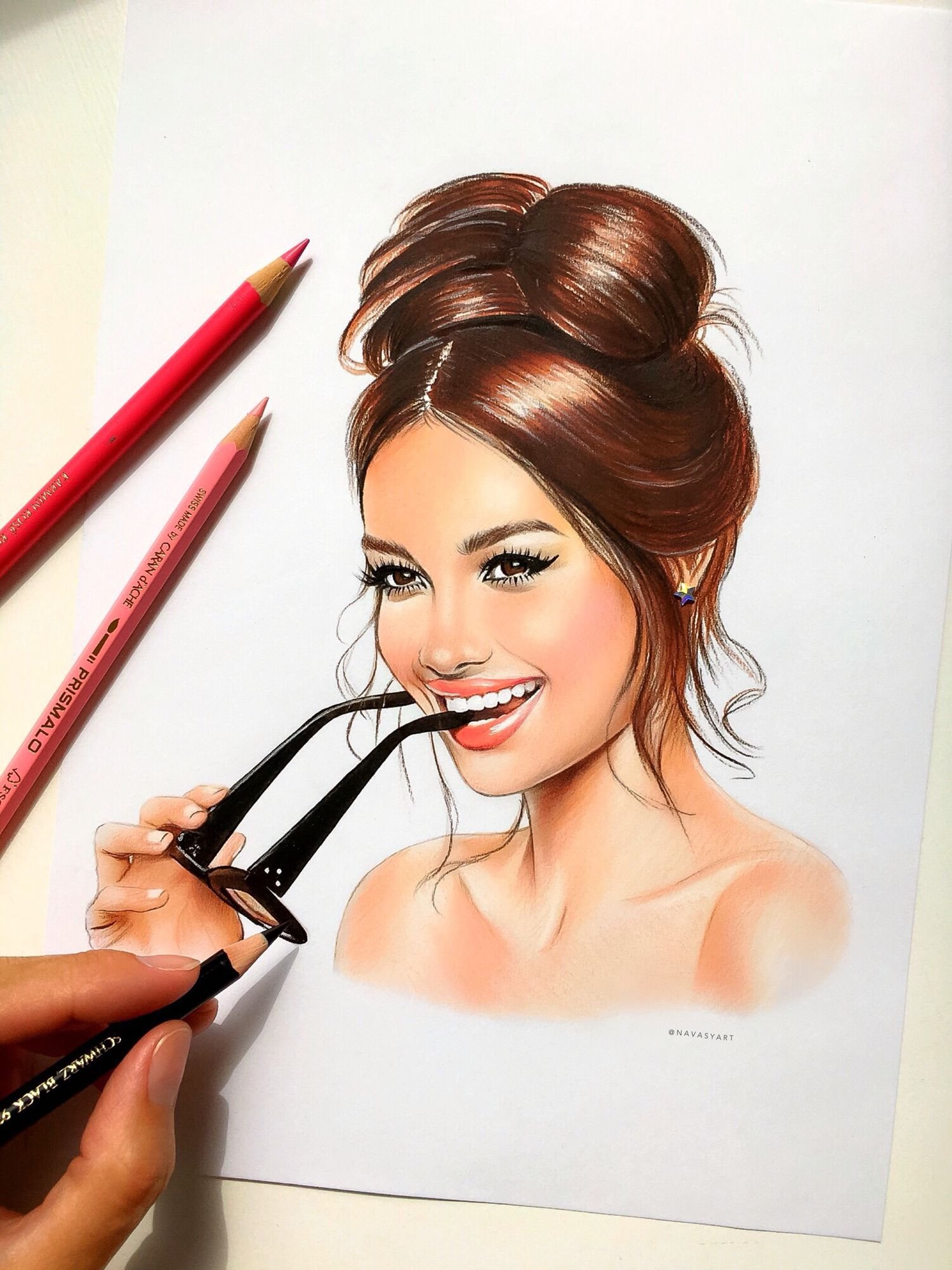 Девушка на рисунке производит ошеломляющее впечатление своей красотой. Ее изящные черты лица, идеальная форма глаз, плавные линии контуров создают неповторимый образ, который трудно оторвать взгляд. Художник смог передать ее элегантность и женственность, делая каждую деталь максимально привлекательной. Взгляд девушки полон загадочности и глубины, он приковывает внимание и заставляет задуматься о ее истории. Рисунок дарит нам возможность наслаждаться безупречной красотой эфемерного момента, запечатленного на бумаге.
