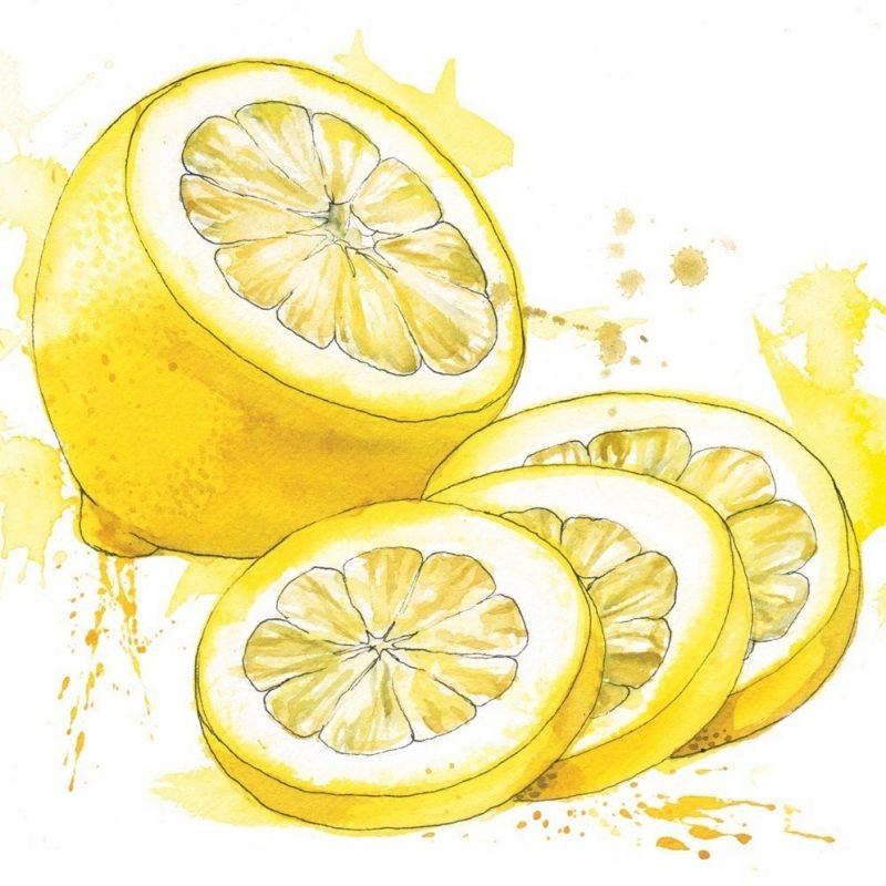 ![Скетч лимон акварелью]()