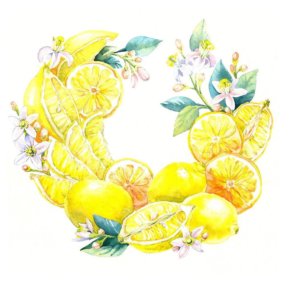 ![Акварельные фрукты лимон]()