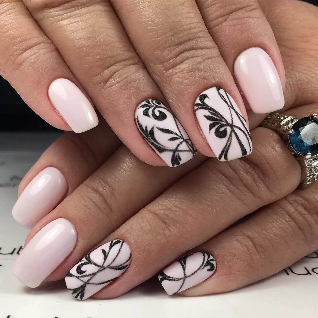 ![Красивый маникюр с узорами]()