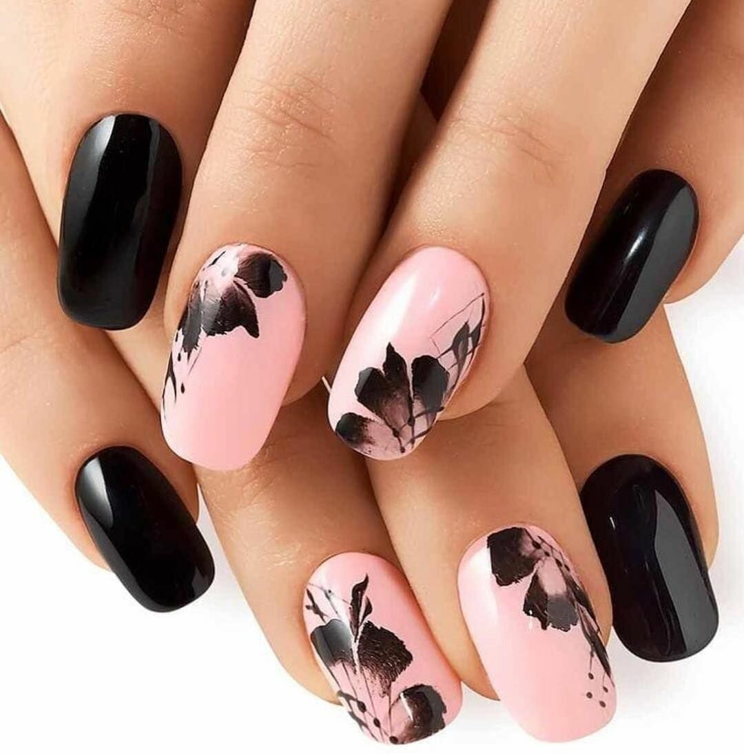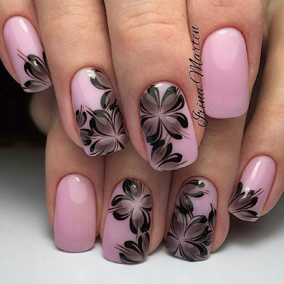 Розовые ногти с цветами
