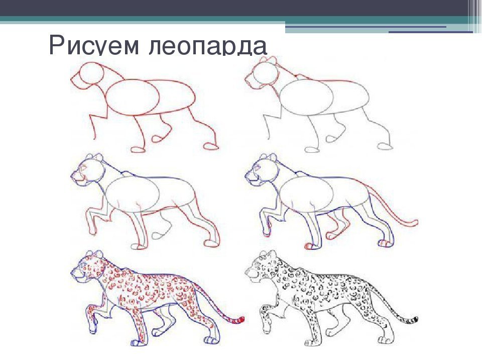 Леопард пошаговое рисование для детей