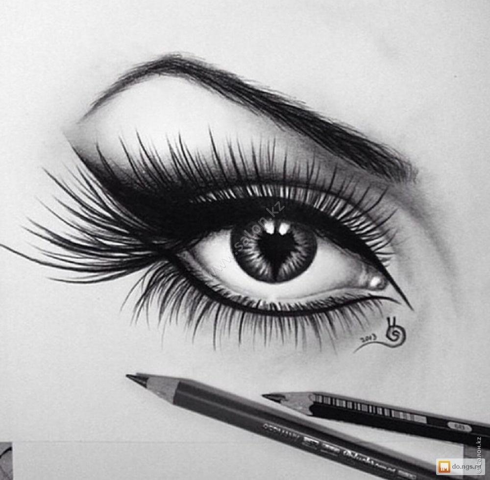 ![Глаза девушки карандашом]()