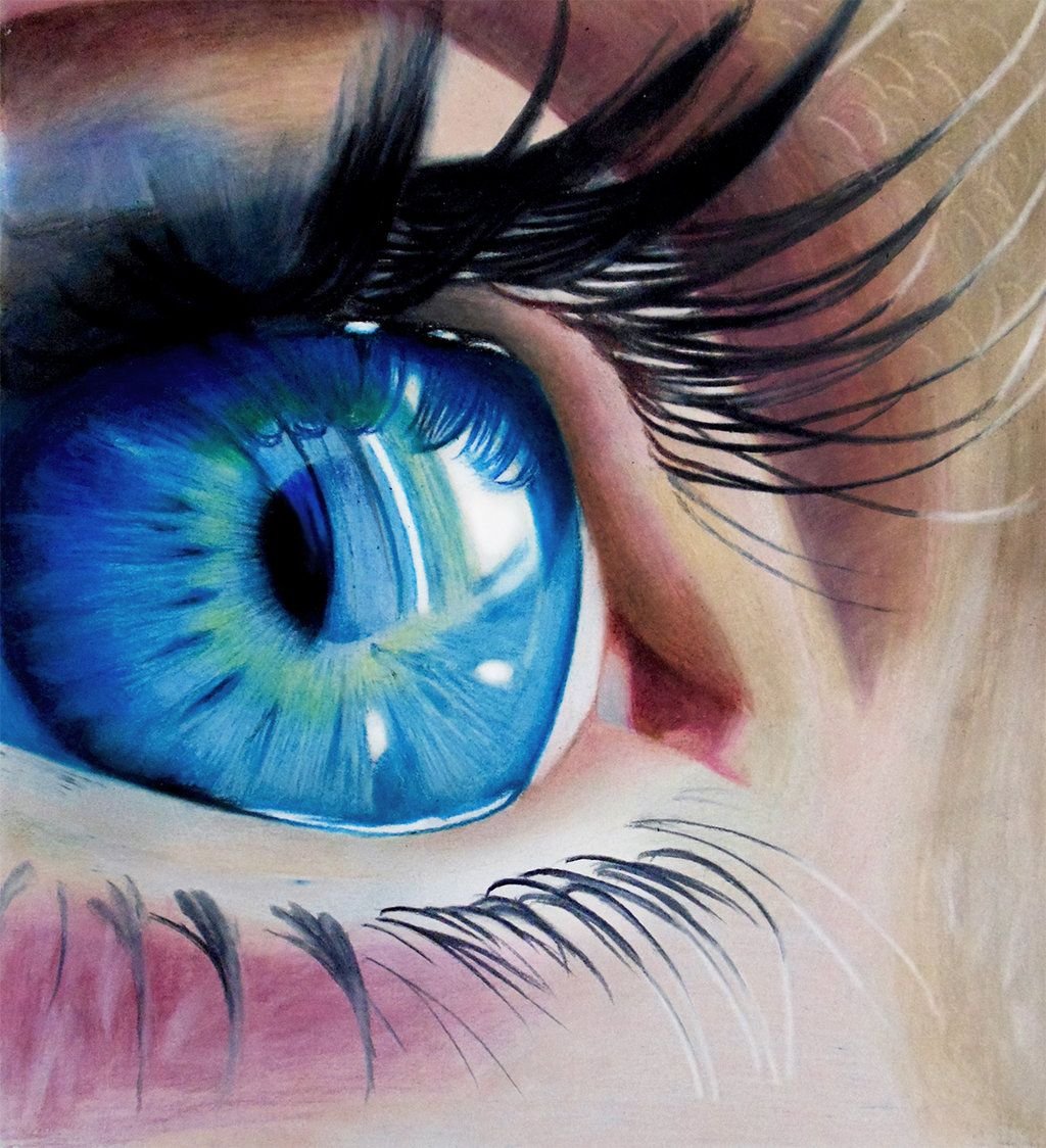 ![Реалистичный глаз цветными карандашами]()