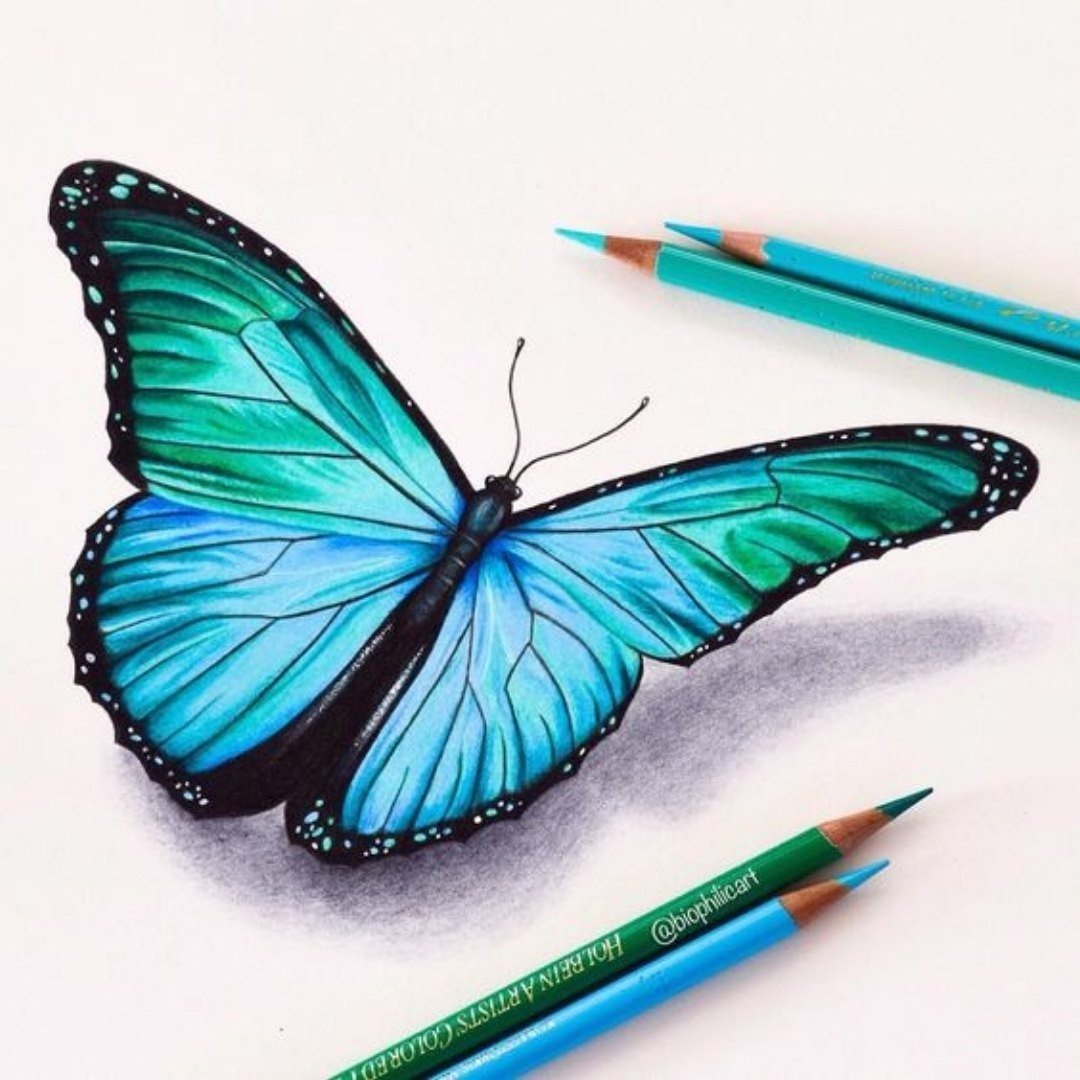 ![Бабочка акварельными карандашами]()
