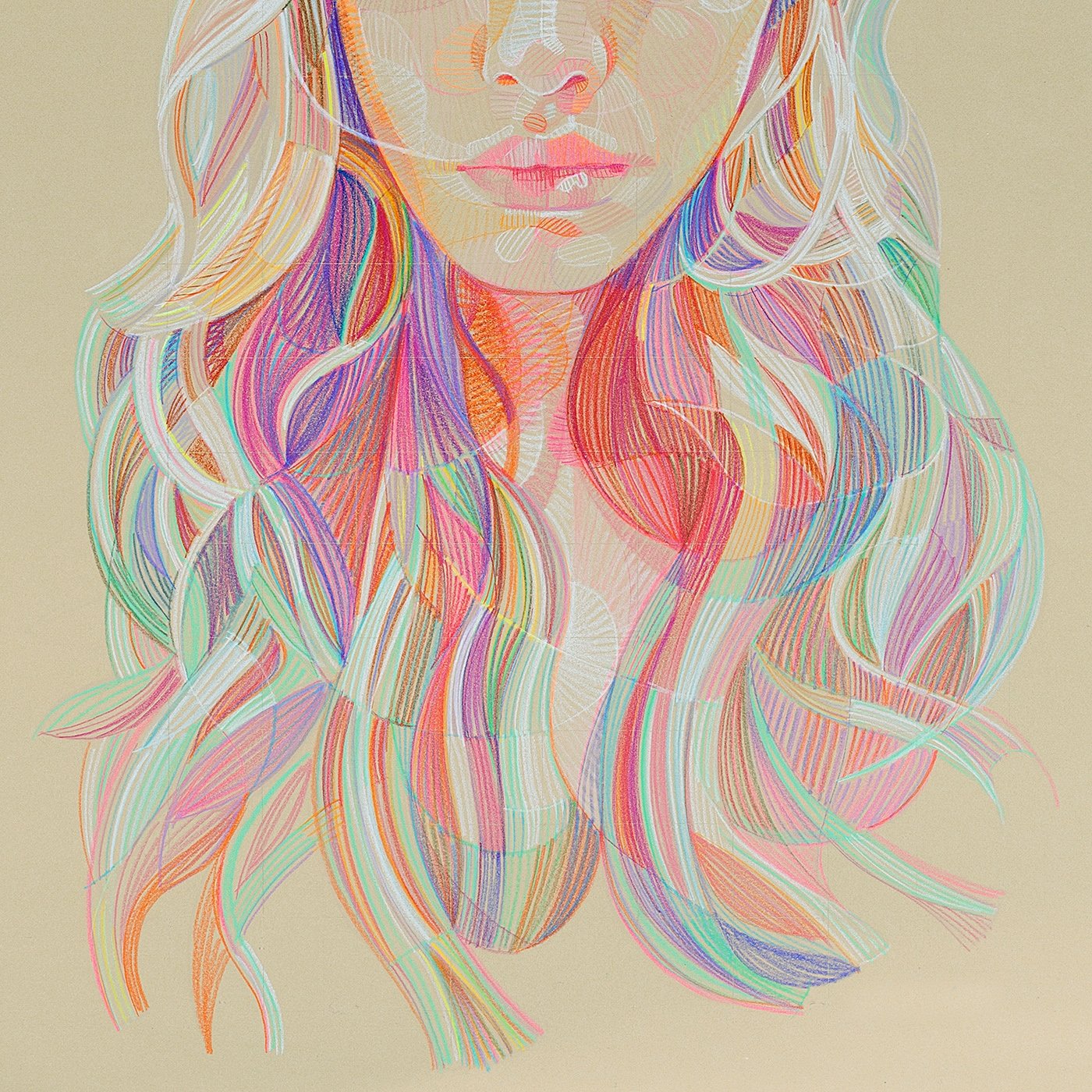 Волосы цветными карандашами