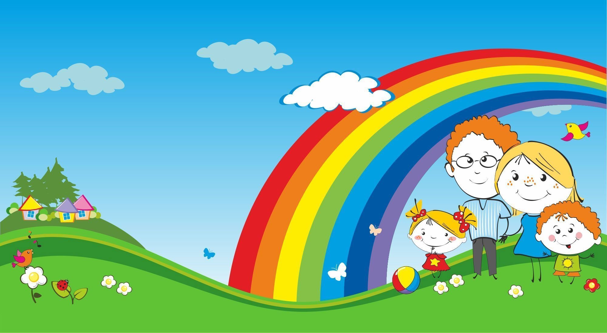 ![Детский фон с радугой]()