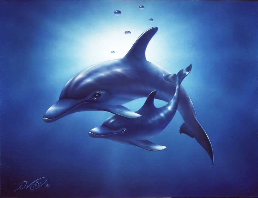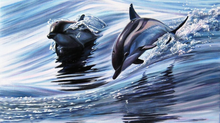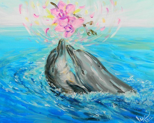 ![Дельфины маслом]()