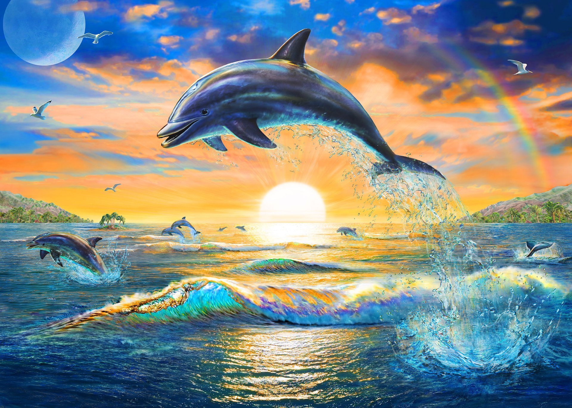 Красивые пейзажи с дельфинами