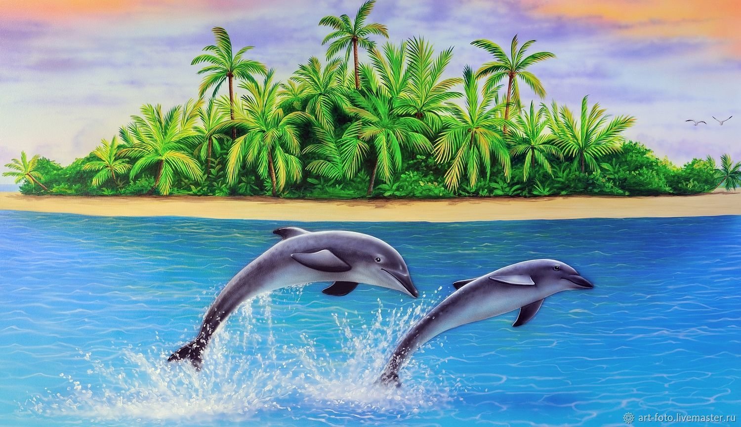 ![Дельфины пальмы]()