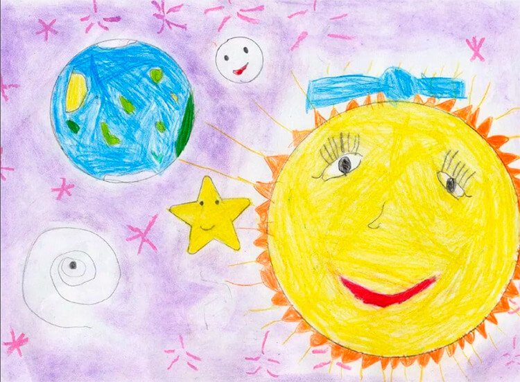 Погрузитесь в удивительный космический мир с помощью этого красочного рисунка, где центральным элементом является яркое и прекрасное солнце. Оно излучает свет и тепло, наполняя вселенную своей энергией. Вокруг него разбросаны звезды, которые создают впечатление бесконечности космоса. Краски, используемые в этом рисунке, отражают все оттенки космической атмосферы - от сияющего оранжевого до глубоких фиолетовых и черных. Замечательное сочетание цветов и деталей позволяет ощутить магию и загадку космоса прямо на бумаге. Этот рисунок будет великолепным украшением для любого помещения и подарком для всех, кто увлекается космическими приключениями и мечтает о путешествии в безграничные просторы вселенной.