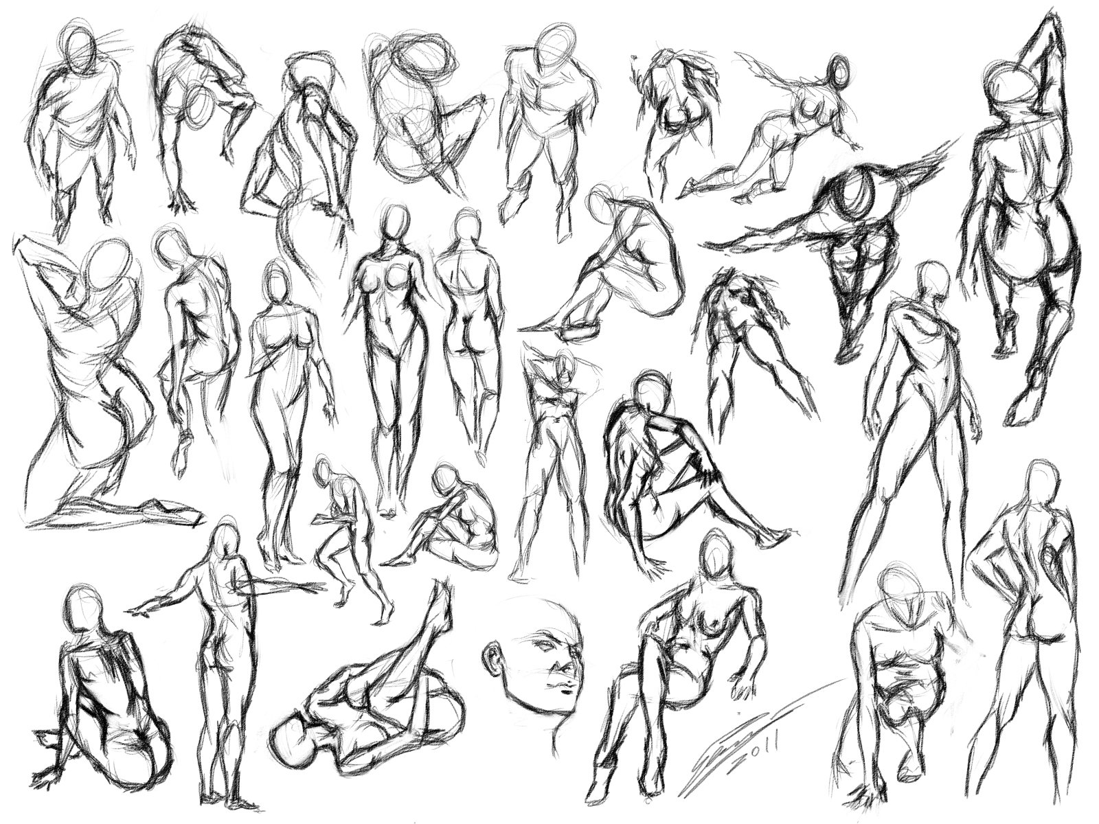 ![Наброски поз для рисования]()