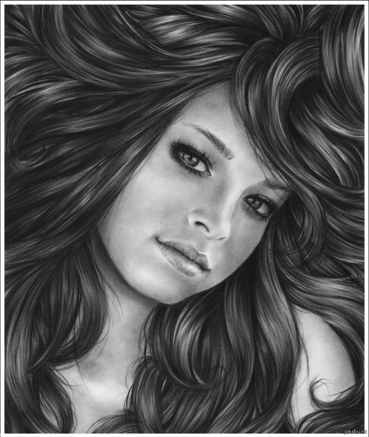 ![Женский портрет карандашом]()