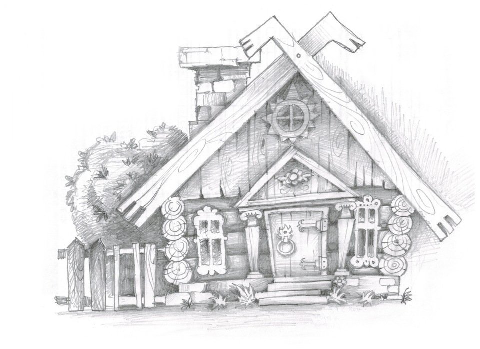 Избушка рисунок карандашом