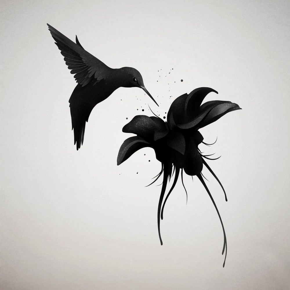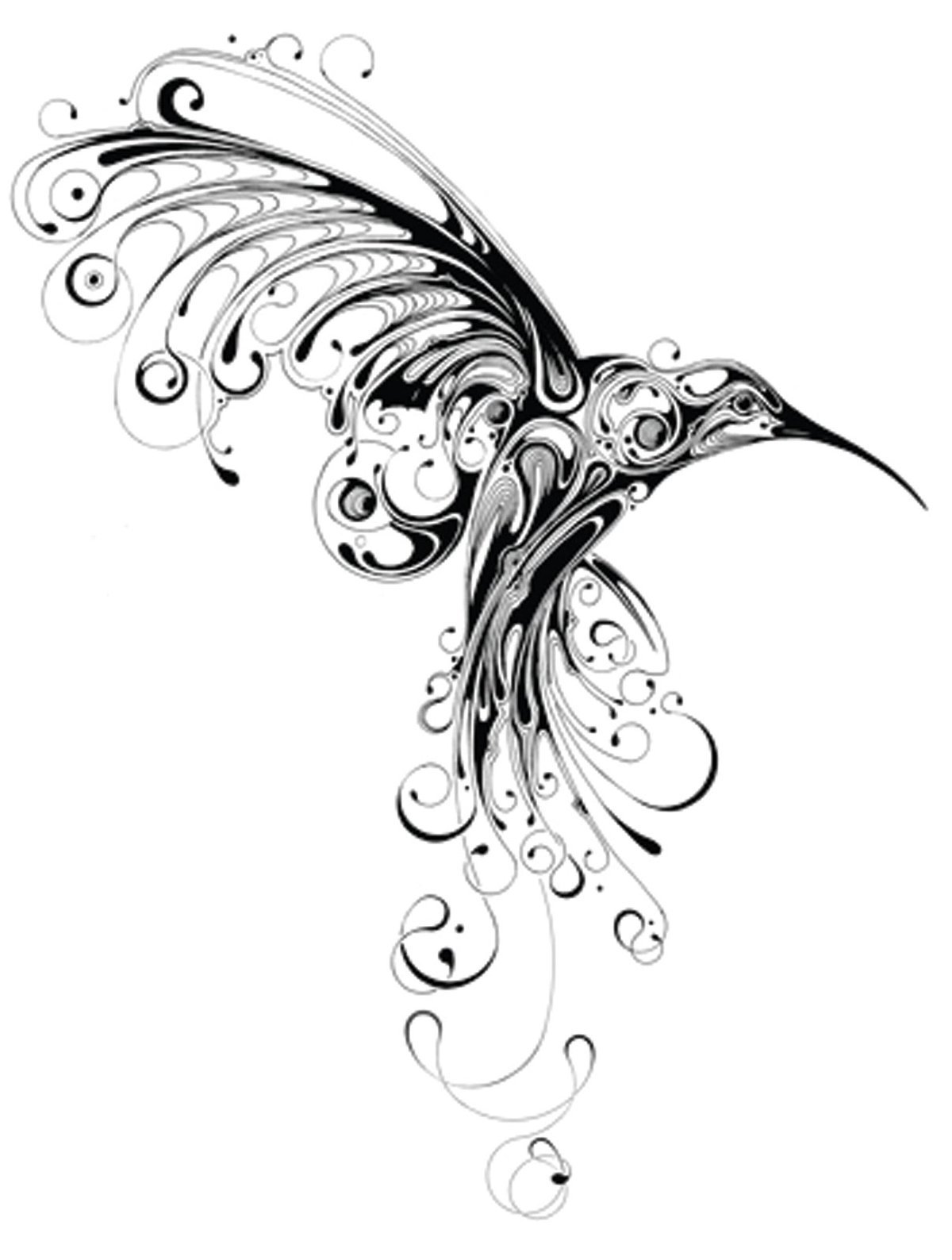 ![Тату Колибри черно белая]()