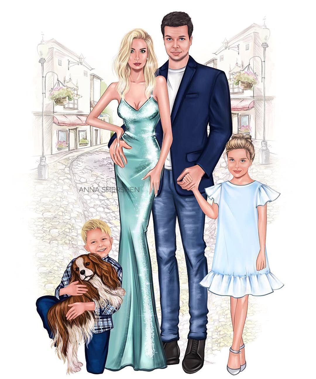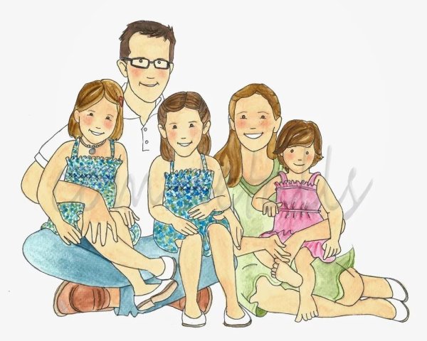 ![Семейный портрет акварелью]()