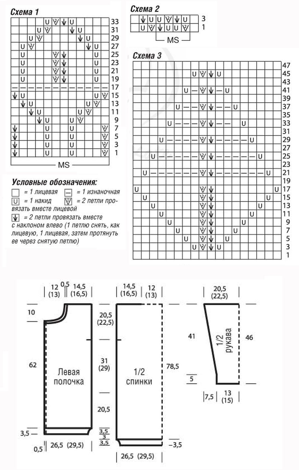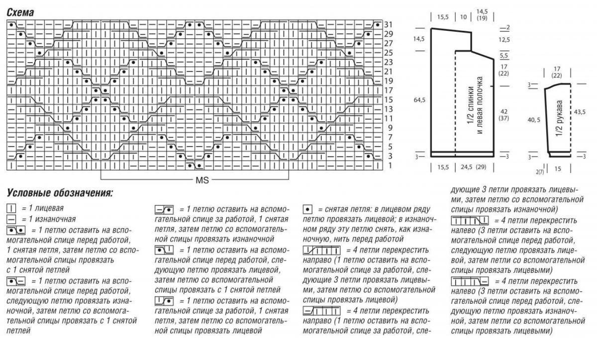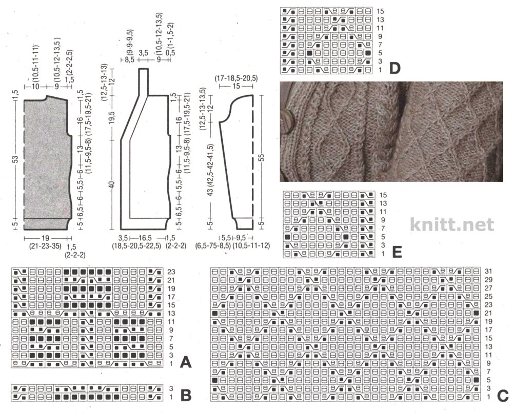 ![Схемы узора для жилетки спицами]()