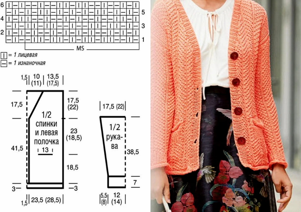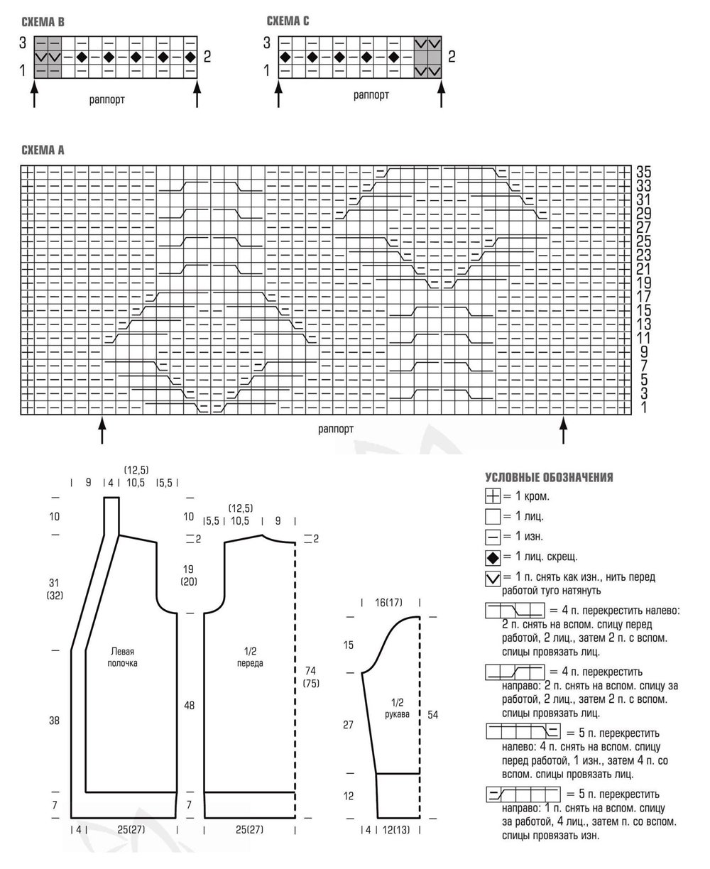 Схема вязания кардигана спицами 56 размера