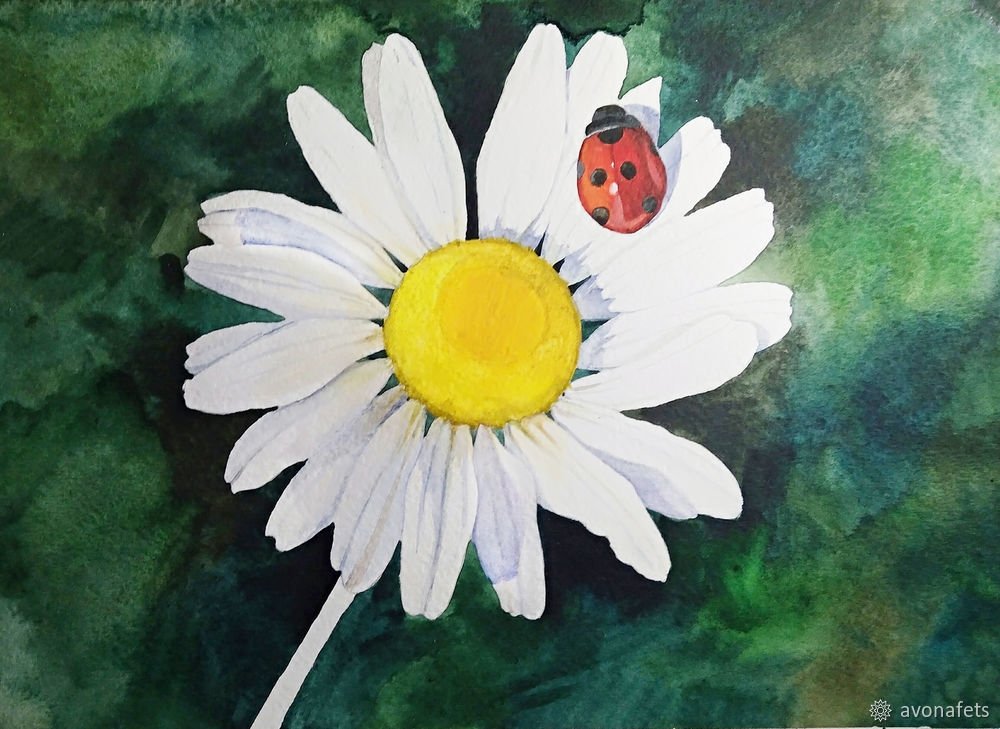 Пейзаж с ромашками гуашью