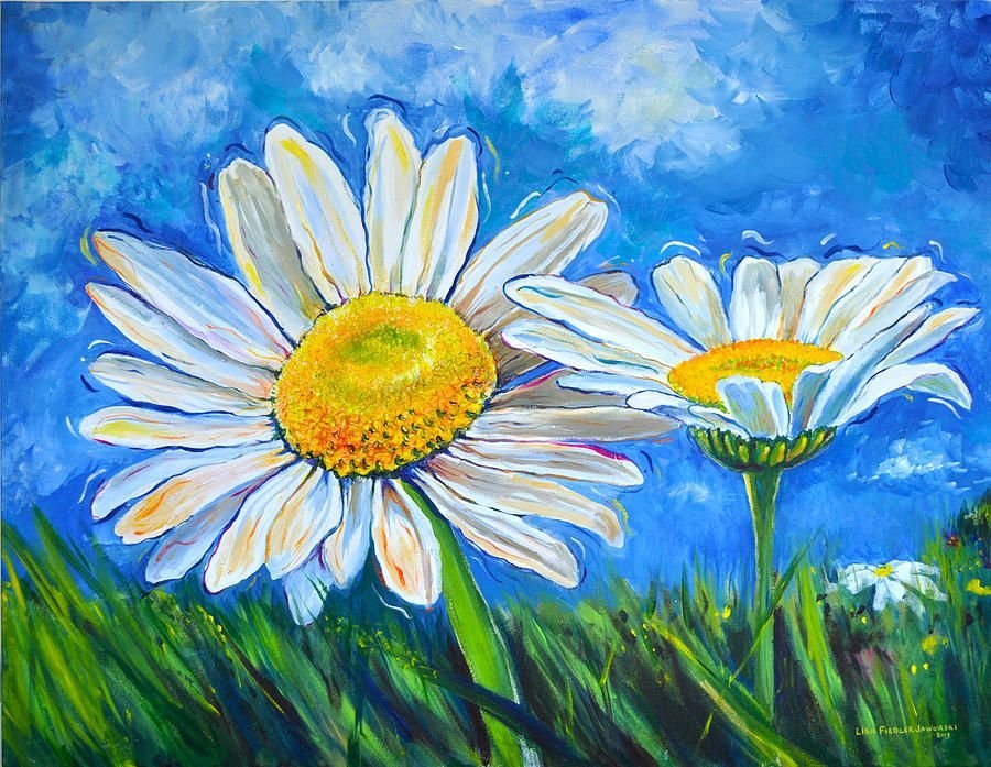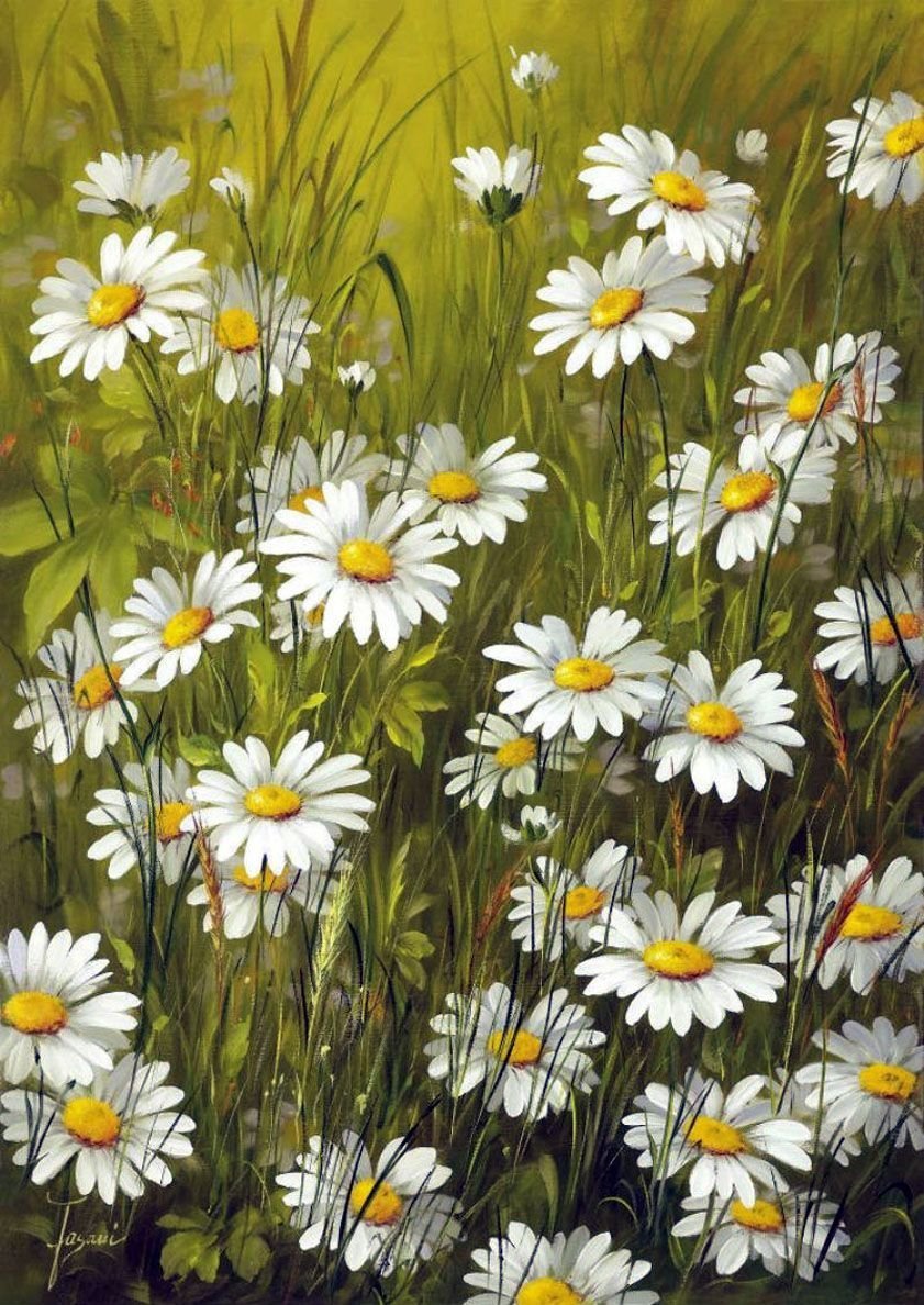 ![Ромашки акрилом на холсте]()