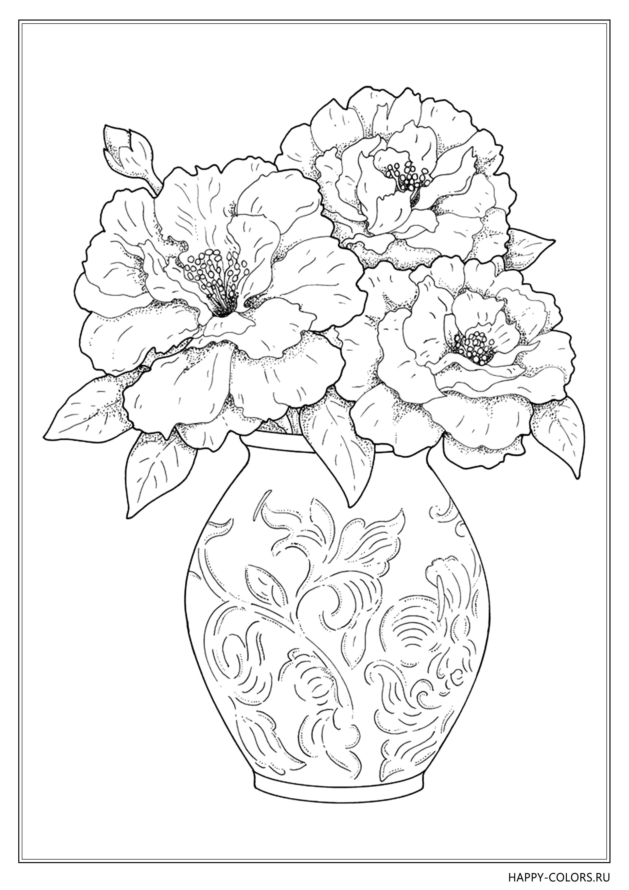 Ваза с цветами раскраска