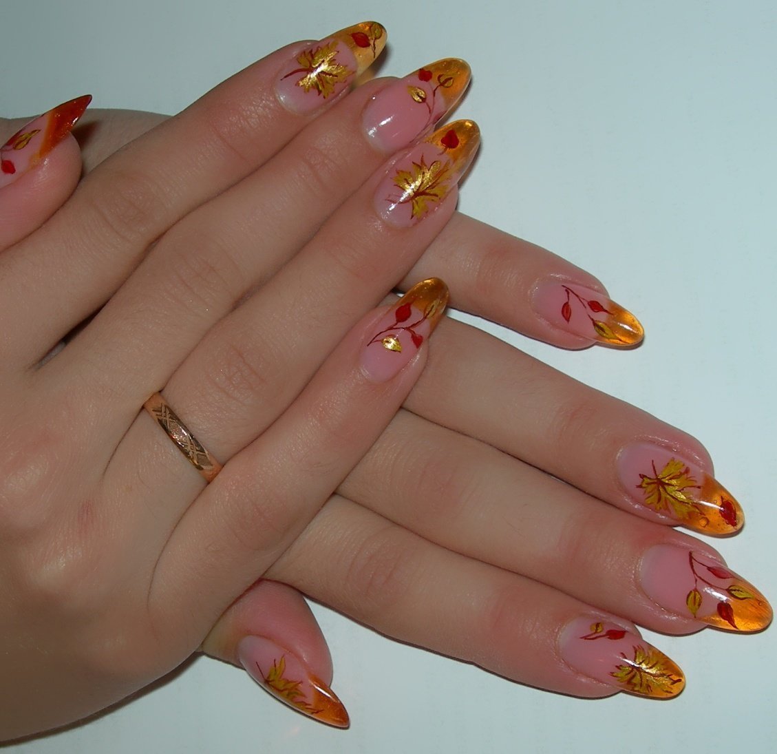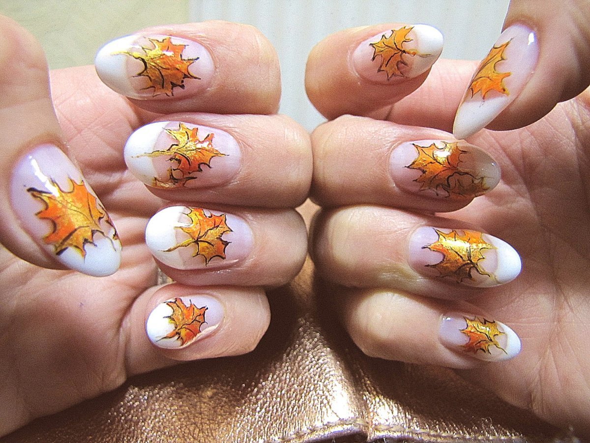 Осенние листья на ногтях