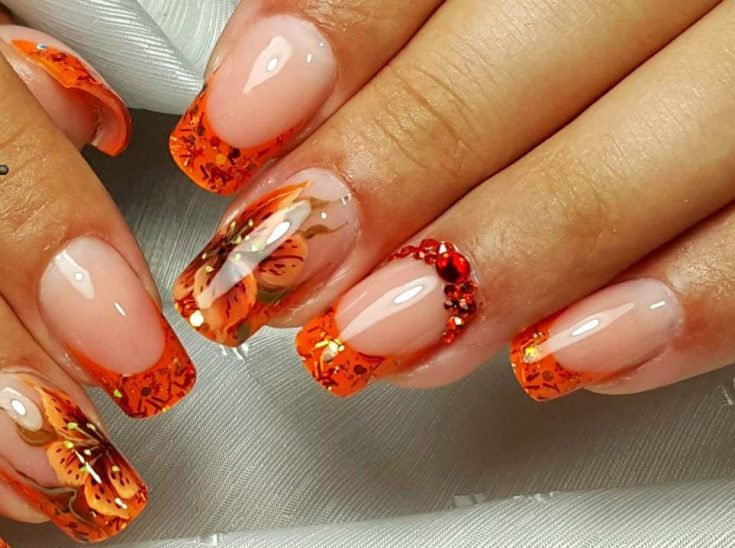 Маникюр френч с осенними цветами