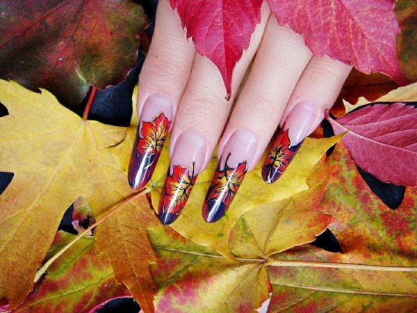 Осенний маникюр с листьями