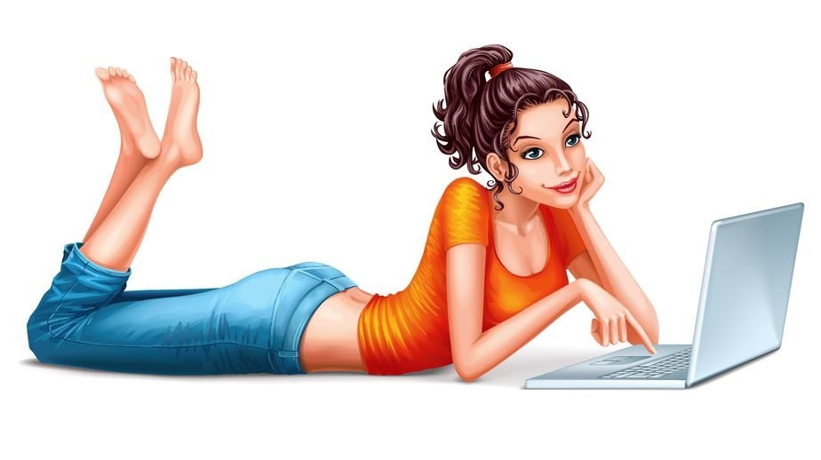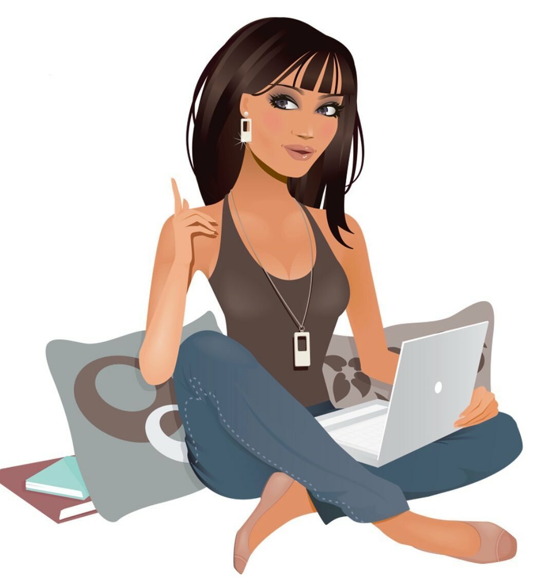 ![Девушка с ноутбуком рисунок]()