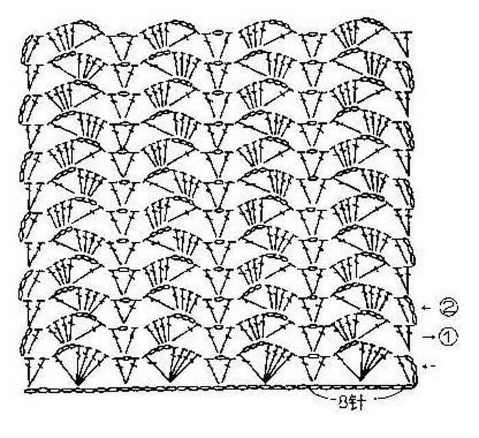 ![Узоры крючком веерочки и ракушки схемы]()