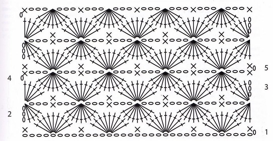 Узоры крючком веерочки и ракушки схемы