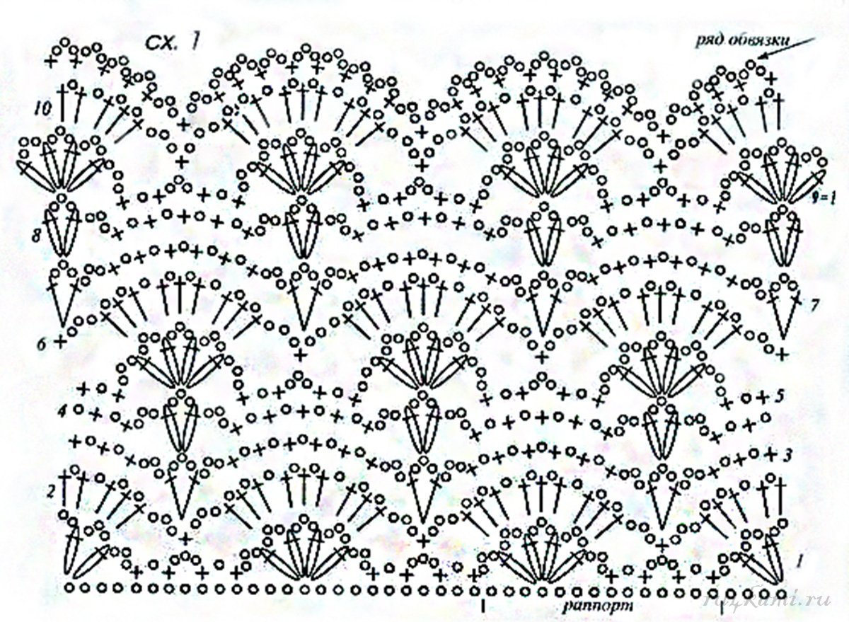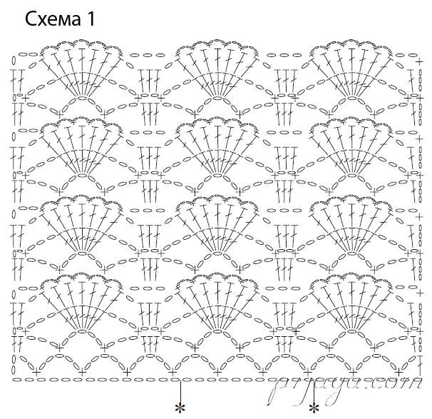 Узор веера крючком схема с описанием