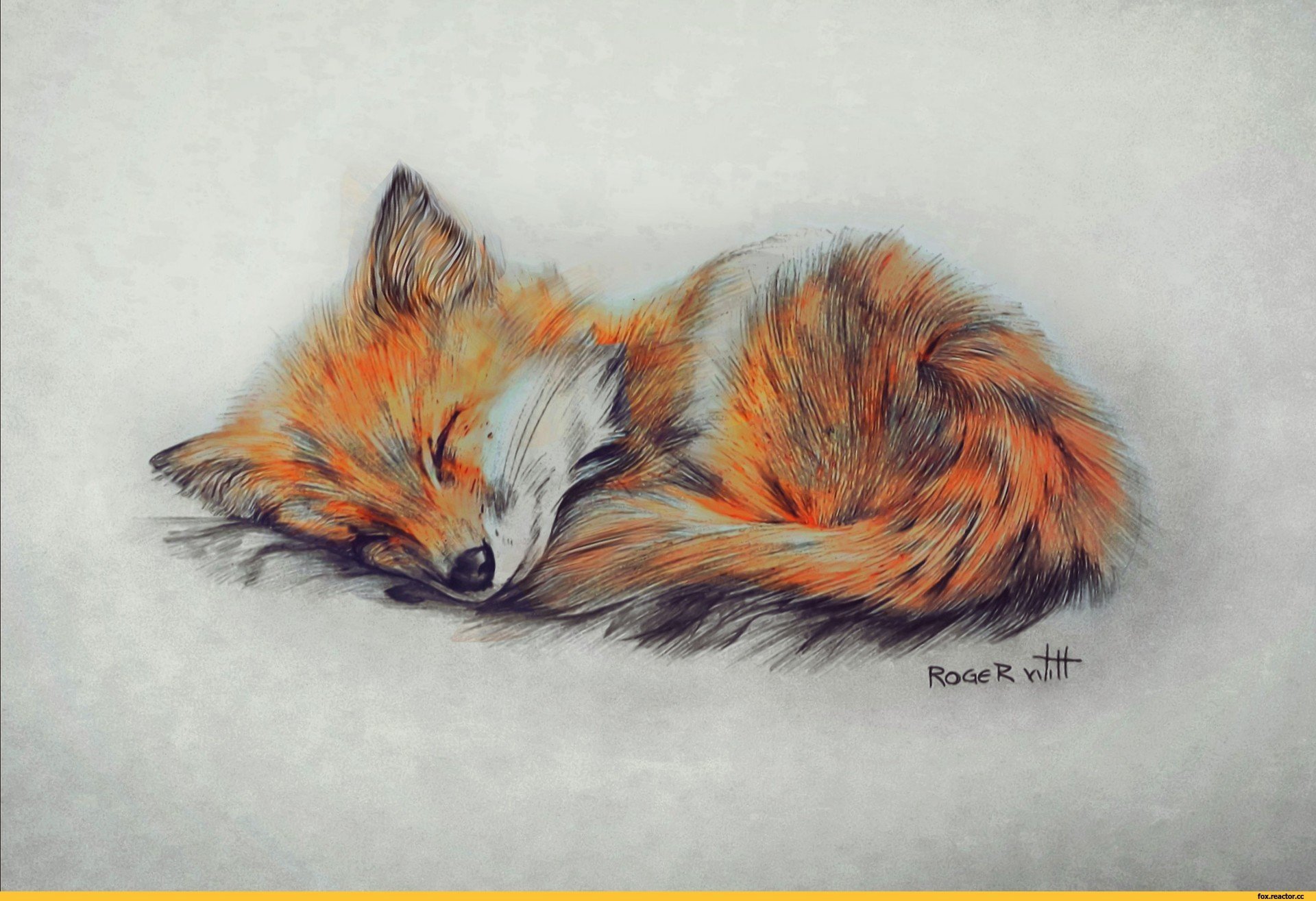 Лиса цветными карандашами