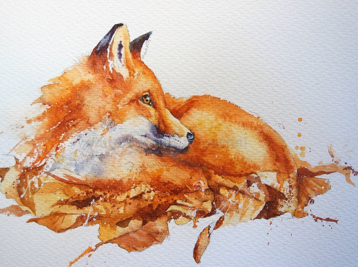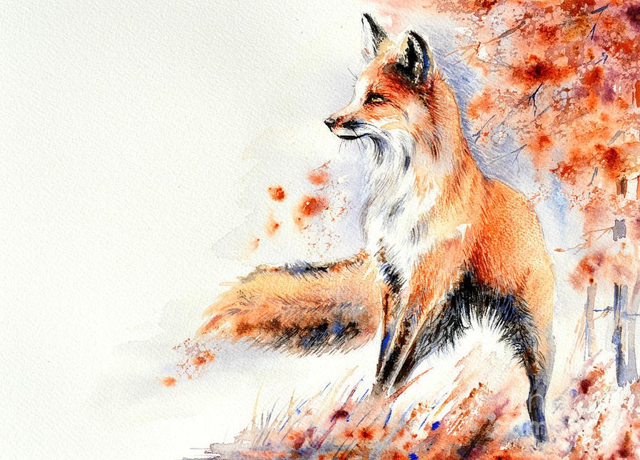 Лиса акварелью