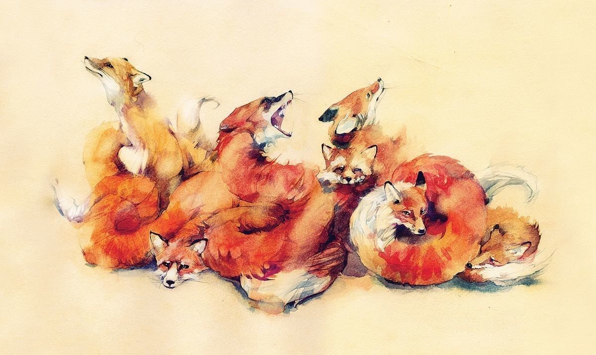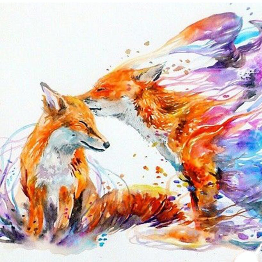 Лисы акварелью