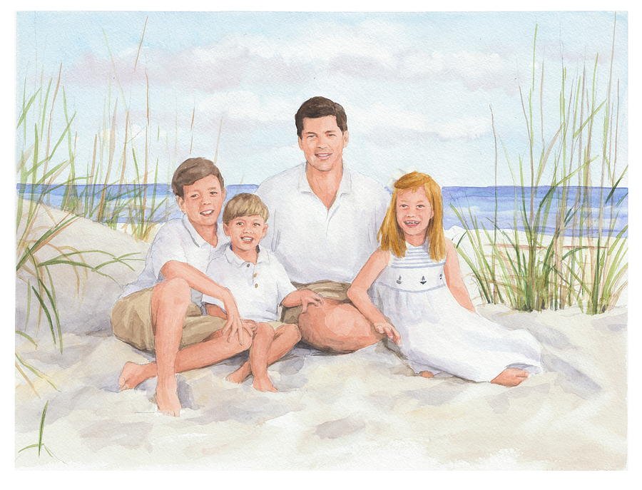 Семья на море акварель