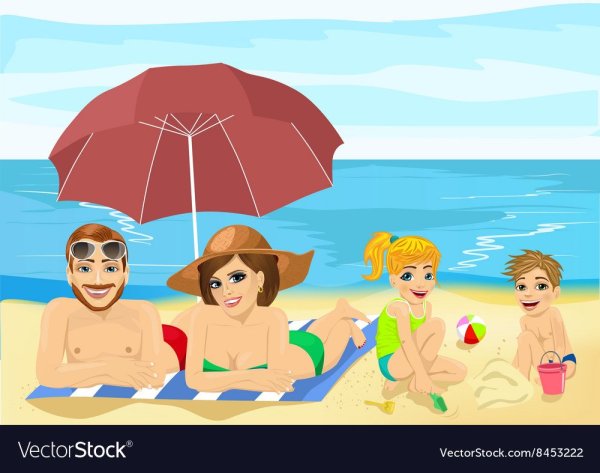Семья на пляже рисунок